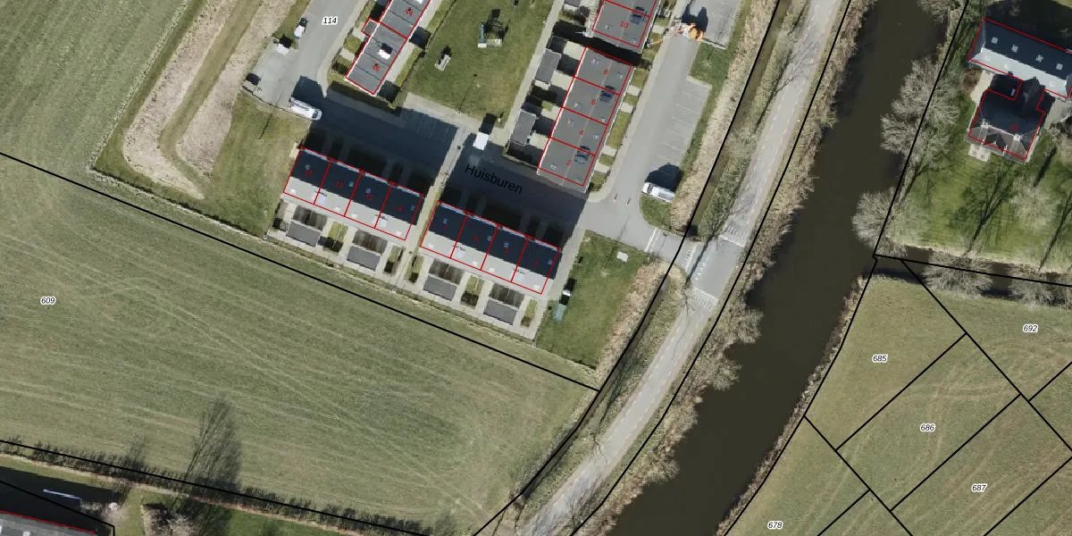Het perceel waarop Huisburen 1 staat heeft een oppervlakte van 1,4 ha. Dit is een zeer groot perceel. De perceeloppervlakte wordt geregistreerd door het Kadaster. Gedetailleerde informatie over de maten van dit perceel kunt u vinden in het rapport Kadastrale kaart met maatvoering van Huisburen 1.