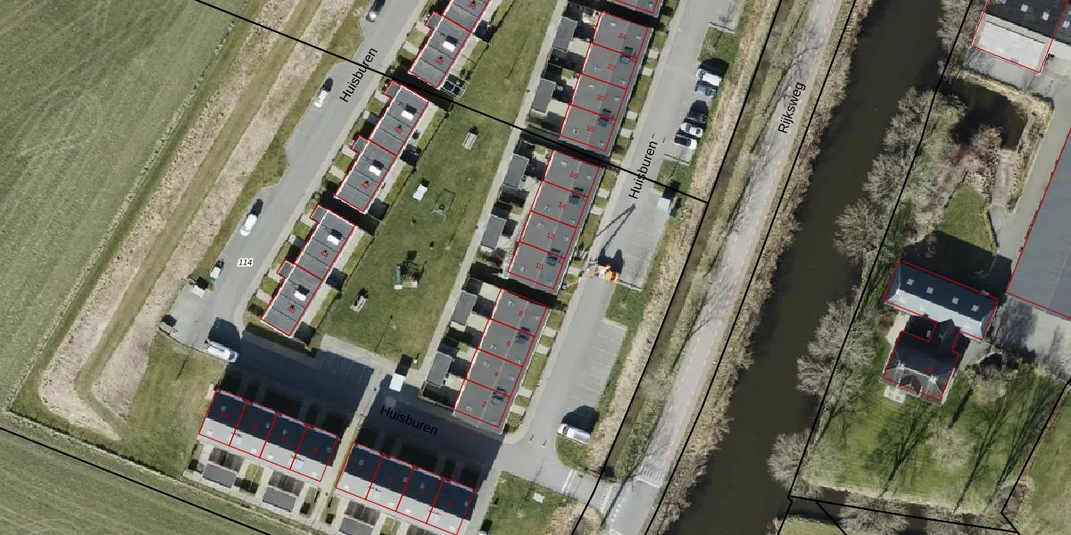 Het perceel waarop Huisburen 10 staat heeft een oppervlakte van 1,4 ha. Dit is een zeer groot perceel. De perceeloppervlakte wordt geregistreerd door het Kadaster. Gedetailleerde informatie over de maten van dit perceel kunt u vinden in het rapport Kadastrale kaart met maatvoering van Huisburen 10.