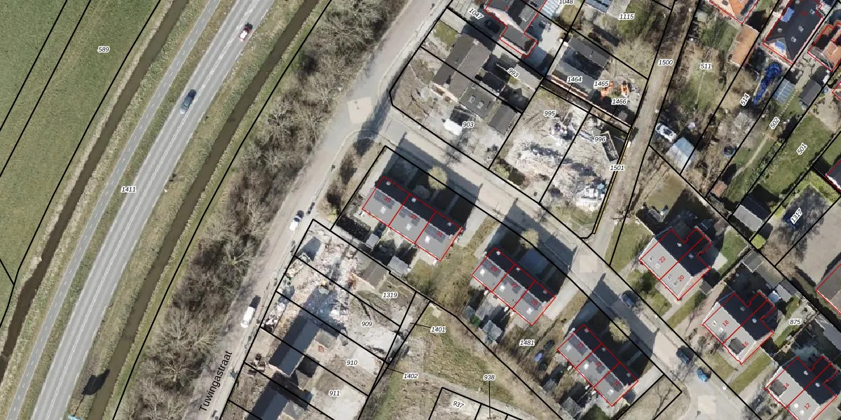 Het adres ligt op het perceel BOE00-C-1481, dat zich in de kadastrale gemeente ten Boer bevindt. Het perceel is 2050 m² groot. Dat is kleiner dan de gemiddelde perceeloppervlakte in ten Boer, dat op 8517,35 m² ligt. Het kleinste perceel in de kadastrale gemeente is 0 m² groot. De grootste perceeloppervlakte is 36,2 ha. Er zijn 9 adressen aanwezig op het perceel. De huidige grenzen van het perceel zijn digitaal in de Basisregistratie Kadaster (BRK) geregistreerd op 27-10-2023.