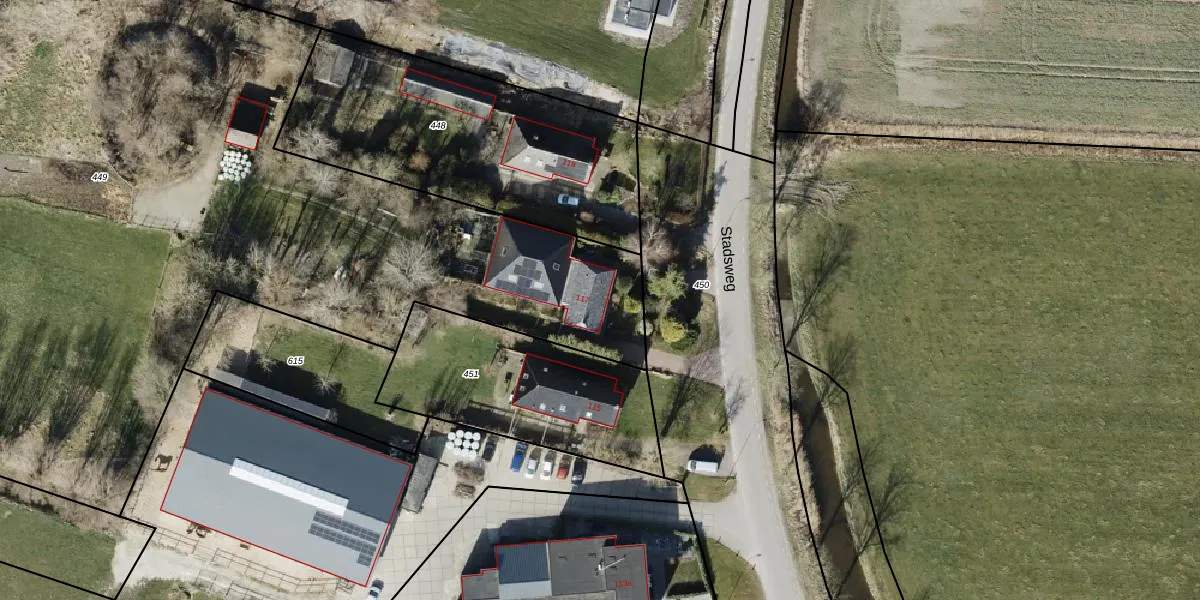 Stadsweg 117 is gelegen op kadastraal perceel BOE00L449. Deze kadastrale aanduiding is uniek en wordt gebruikt door het Kadaster om eigendomsrechten en andere zakelijke rechten vast te leggen. Het perceel maakt onderdeel uit van de kadastrale gemeente ten Boer.