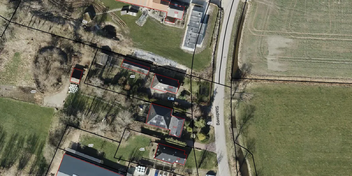 Stadsweg 119 is gelegen op kadastraal perceel BOE00L448. Deze kadastrale aanduiding is uniek en wordt gebruikt door het Kadaster om eigendomsrechten en andere zakelijke rechten vast te leggen. Het perceel maakt onderdeel uit van de kadastrale gemeente ten Boer.