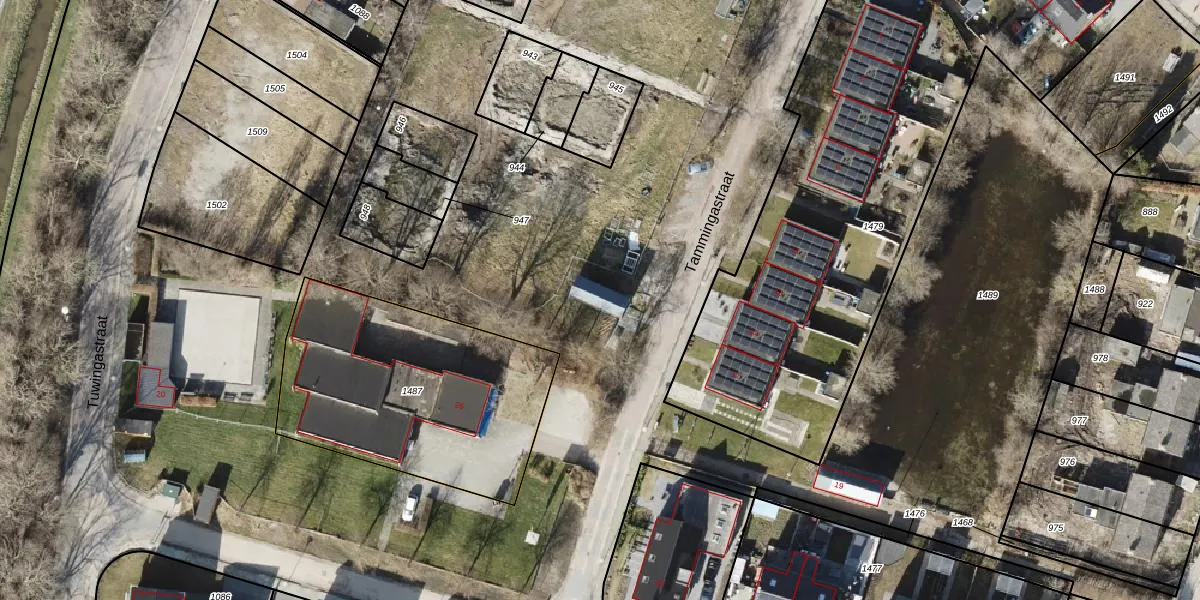 Het perceel waarop Tammingastraat 24-a staat heeft een oppervlakte van 2,8 ha. Dit is een zeer groot perceel. De perceeloppervlakte wordt geregistreerd door het Kadaster. Gedetailleerde informatie over de maten van dit perceel kunt u vinden in het rapport Kadastrale kaart met maatvoering van Tammingastraat 24-a.