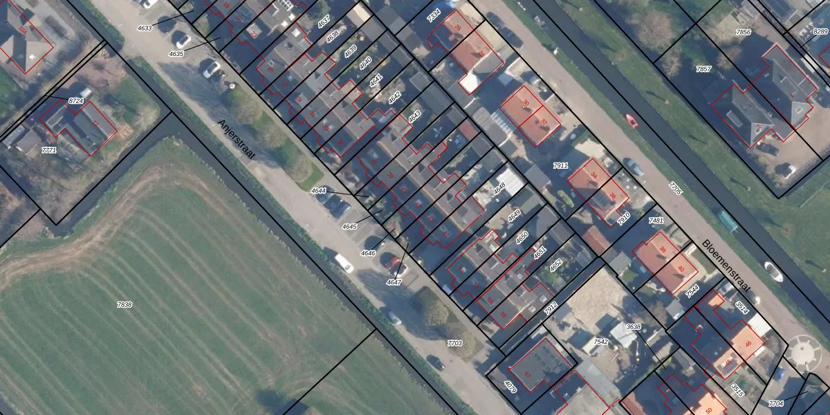 Anjerstraat 43 is gelegen op kadastraal perceel AAR00A4646. Deze kadastrale aanduiding is uniek en wordt gebruikt door het Kadaster om eigendomsrechten en andere zakelijke rechten vast te leggen. Het perceel maakt onderdeel uit van de kadastrale gemeente Ter Aar.