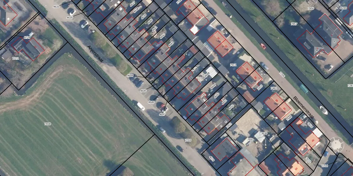 Anjerstraat 45 is gelegen op kadastraal perceel AAR00A4647. Deze kadastrale aanduiding is uniek en wordt gebruikt door het Kadaster om eigendomsrechten en andere zakelijke rechten vast te leggen. Het perceel maakt onderdeel uit van de kadastrale gemeente Ter Aar.