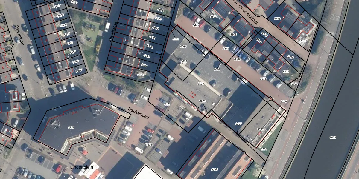 Het perceel waarop Beukenpad 25 staat heeft een oppervlakte van 1219 m². Dit is een zeer groot perceel. De perceeloppervlakte wordt geregistreerd door het Kadaster. Gedetailleerde informatie over de maten van dit perceel kunt u vinden in het rapport Kadastrale kaart met maatvoering van Beukenpad 25.
