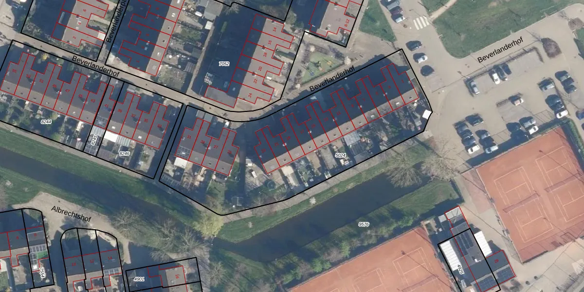 Het perceel waarop Beverlanderhof 19 staat heeft een oppervlakte van 2660 m². Dit is een zeer groot perceel. De perceeloppervlakte wordt geregistreerd door het Kadaster. Gedetailleerde informatie over de maten van dit perceel kunt u vinden in het rapport Kadastrale kaart met maatvoering van Beverlanderhof 19.