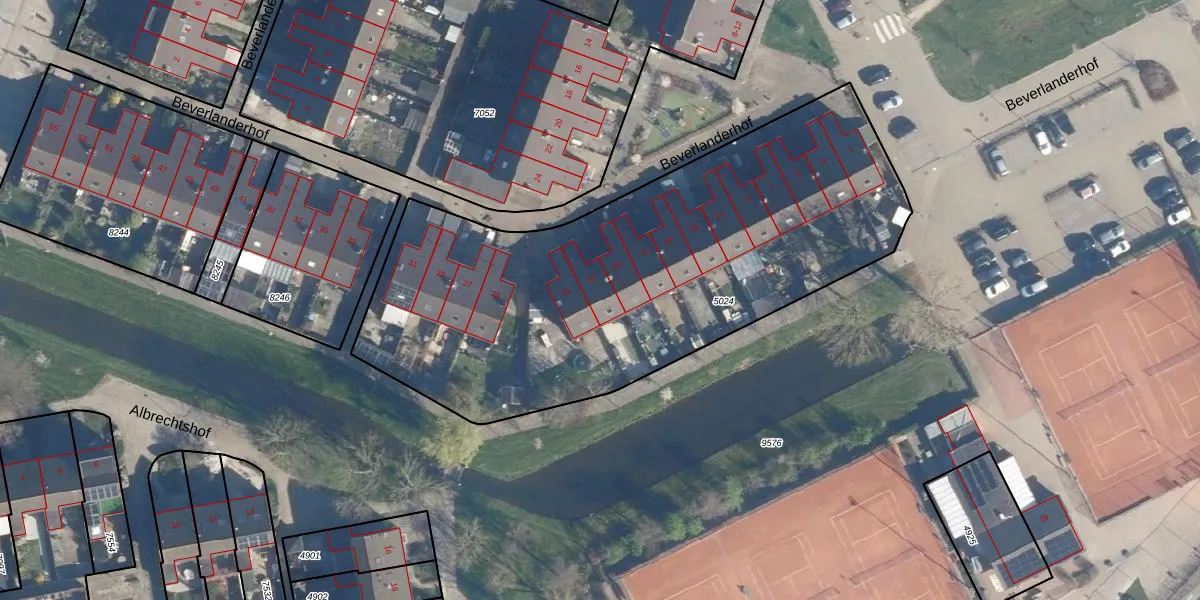 Het perceel waarop Beverlanderhof 21 staat heeft een oppervlakte van 2660 m². Dit is een zeer groot perceel. De perceeloppervlakte wordt geregistreerd door het Kadaster. Gedetailleerde informatie over de maten van dit perceel kunt u vinden in het rapport Kadastrale kaart met maatvoering van Beverlanderhof 21.