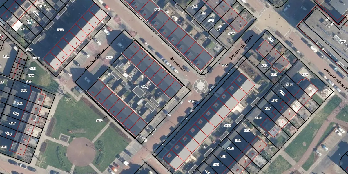 Het perceel waarop Bornstraat 1 staat heeft een oppervlakte van 1585 m². Dit is een zeer groot perceel. De perceeloppervlakte wordt geregistreerd door het Kadaster. Gedetailleerde informatie over de maten van dit perceel kunt u vinden in het rapport Kadastrale kaart met maatvoering van Bornstraat 1.