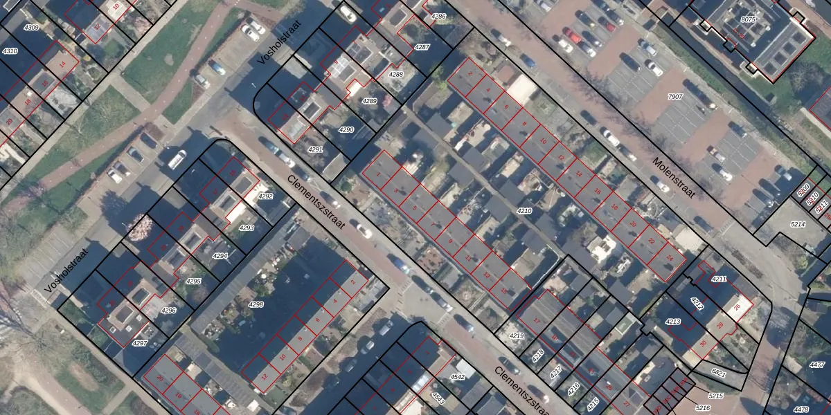Het perceel waarop Clementszstraat 5 staat heeft een oppervlakte van 3322 m². Dit is een zeer groot perceel. De perceeloppervlakte wordt geregistreerd door het Kadaster. Gedetailleerde informatie over de maten van dit perceel kunt u vinden in het rapport Kadastrale kaart met maatvoering van Clementszstraat 5.