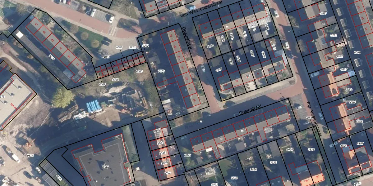 Dosinstraat 21 is gelegen op kadastraal perceel AAR00A7076. Deze kadastrale aanduiding is uniek en wordt gebruikt door het Kadaster om eigendomsrechten en andere zakelijke rechten vast te leggen. Het perceel maakt onderdeel uit van de kadastrale gemeente Ter Aar.