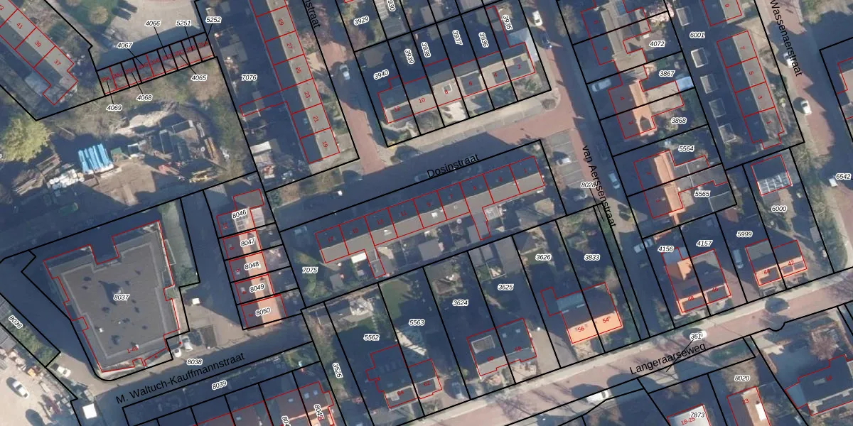 Het perceel waarop Dosinstraat 9 staat heeft een oppervlakte van 1230 m². Dit is een zeer groot perceel. De perceeloppervlakte wordt geregistreerd door het Kadaster. Gedetailleerde informatie over de maten van dit perceel kunt u vinden in het rapport Kadastrale kaart met maatvoering van Dosinstraat 9.