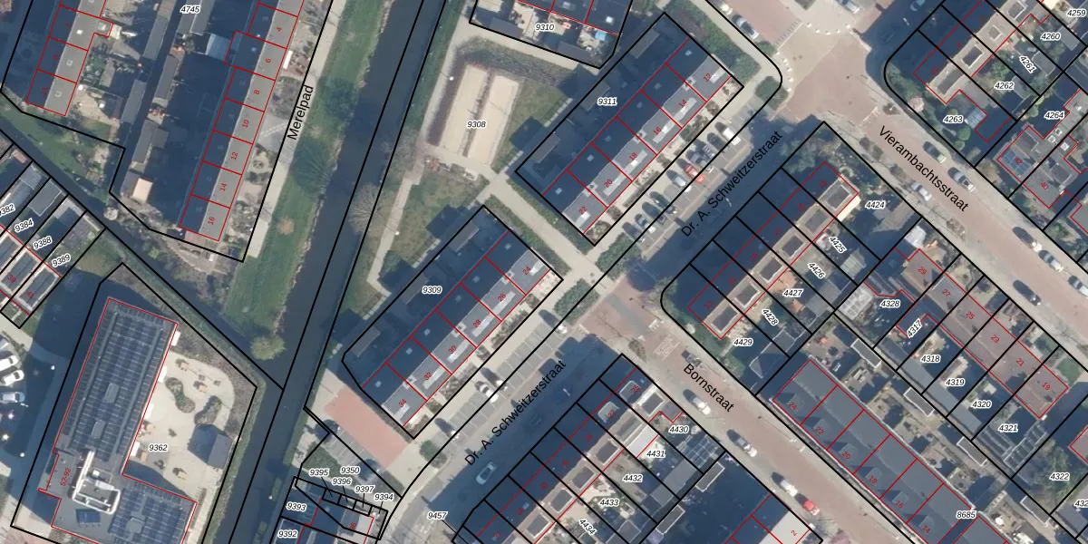 Dr. A. Schweitzerstraat 24 is gelegen op kadastraal perceel AAR00A9309. Deze kadastrale aanduiding is uniek en wordt gebruikt door het Kadaster om eigendomsrechten en andere zakelijke rechten vast te leggen. Het perceel maakt onderdeel uit van de kadastrale gemeente Ter Aar.