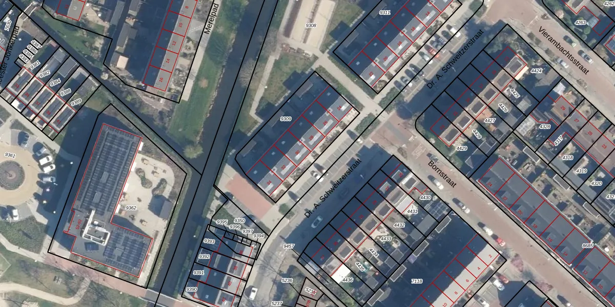 Dr. A. Schweitzerstraat 30 is gelegen op kadastraal perceel AAR00A9309. Deze kadastrale aanduiding is uniek en wordt gebruikt door het Kadaster om eigendomsrechten en andere zakelijke rechten vast te leggen. Het perceel maakt onderdeel uit van de kadastrale gemeente Ter Aar.