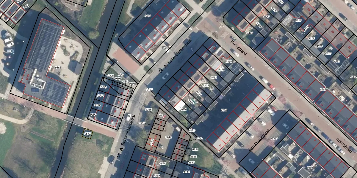 Dr. A. Schweitzerstraat 35 is gelegen op kadastraal perceel AAR00A4435. Deze kadastrale aanduiding is uniek en wordt gebruikt door het Kadaster om eigendomsrechten en andere zakelijke rechten vast te leggen. Het perceel maakt onderdeel uit van de kadastrale gemeente Ter Aar.