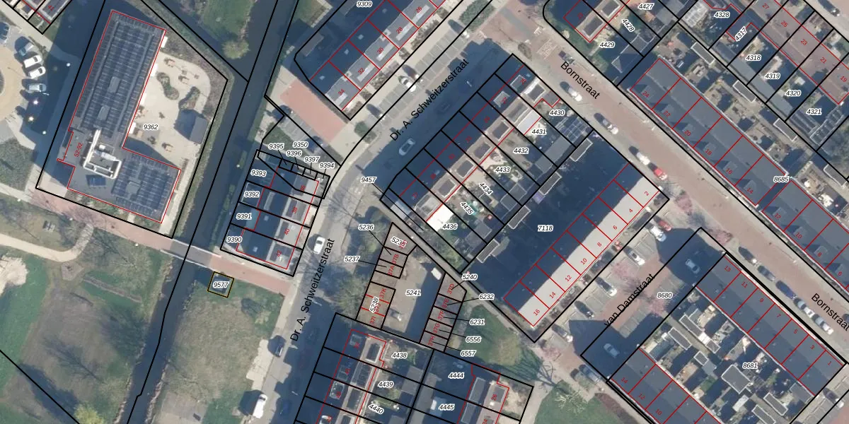 Dr. A. Schweitzerstraat 37 is gelegen op kadastraal perceel AAR00A4436. Deze kadastrale aanduiding is uniek en wordt gebruikt door het Kadaster om eigendomsrechten en andere zakelijke rechten vast te leggen. Het perceel maakt onderdeel uit van de kadastrale gemeente Ter Aar.