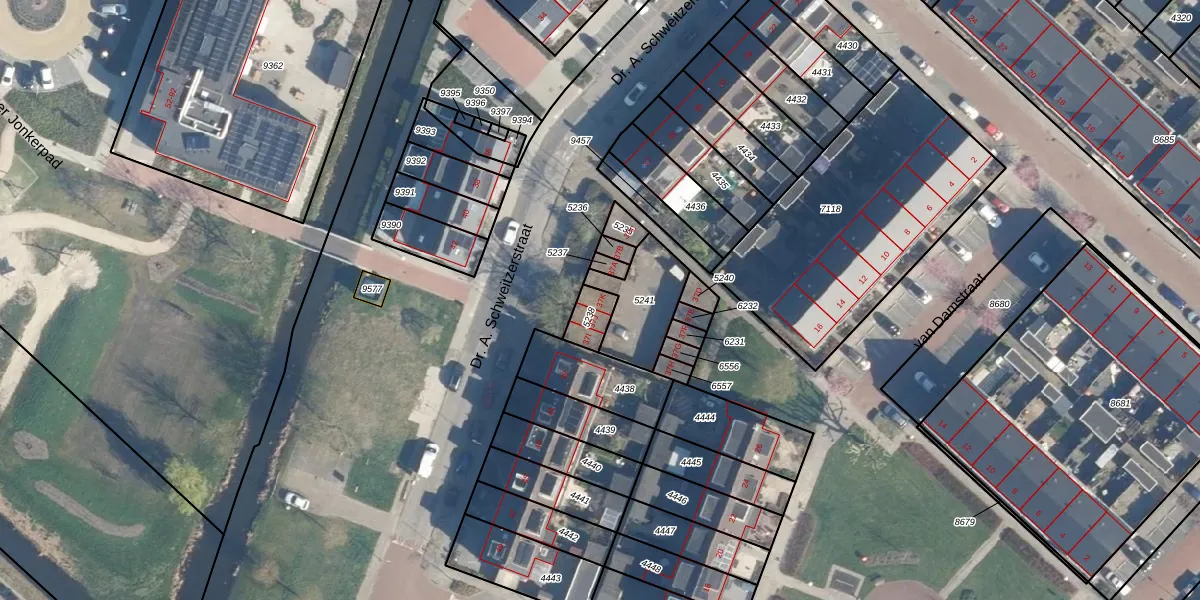 Dr. A. Schweitzerstraat 37-K is gelegen op kadastraal perceel AAR00A5238. Deze kadastrale aanduiding is uniek en wordt gebruikt door het Kadaster om eigendomsrechten en andere zakelijke rechten vast te leggen. Het perceel maakt onderdeel uit van de kadastrale gemeente Ter Aar.