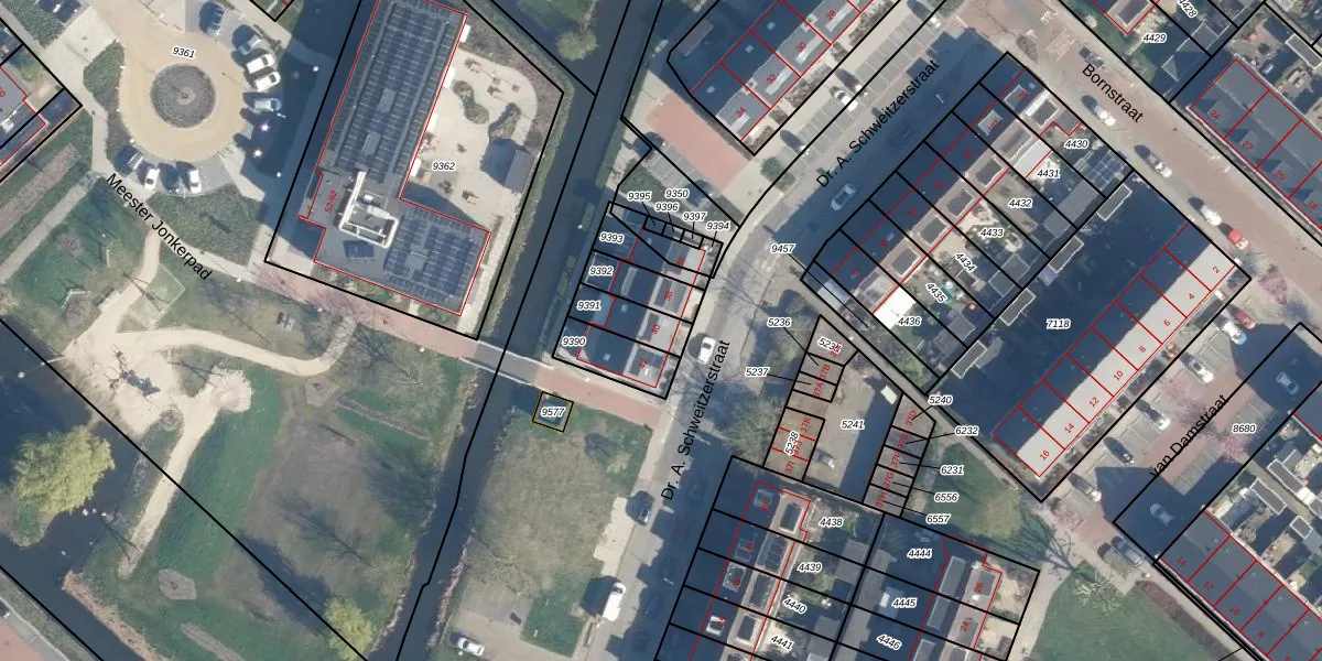 Dr. A. Schweitzerstraat 40 is gelegen op kadastraal perceel AAR00A9391. Deze kadastrale aanduiding is uniek en wordt gebruikt door het Kadaster om eigendomsrechten en andere zakelijke rechten vast te leggen. Het perceel maakt onderdeel uit van de kadastrale gemeente Ter Aar.