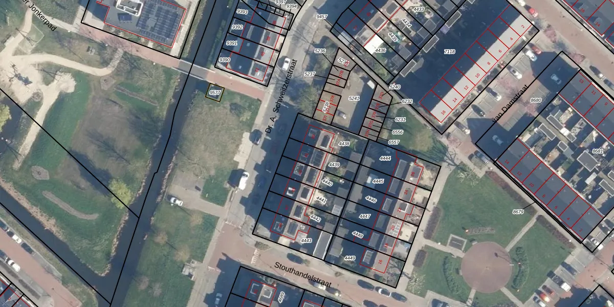 Dr. A. Schweitzerstraat 41 is gelegen op kadastraal perceel AAR00A4439. Deze kadastrale aanduiding is uniek en wordt gebruikt door het Kadaster om eigendomsrechten en andere zakelijke rechten vast te leggen. Het perceel maakt onderdeel uit van de kadastrale gemeente Ter Aar.