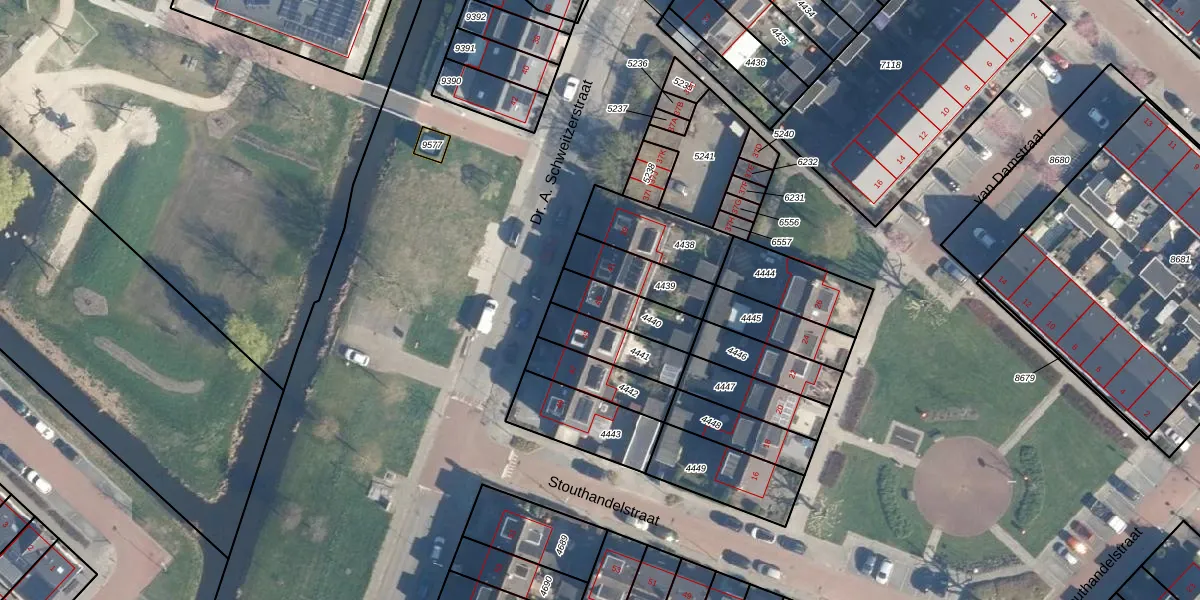 Dr. A. Schweitzerstraat 43 is gelegen op kadastraal perceel AAR00A4440. Deze kadastrale aanduiding is uniek en wordt gebruikt door het Kadaster om eigendomsrechten en andere zakelijke rechten vast te leggen. Het perceel maakt onderdeel uit van de kadastrale gemeente Ter Aar.
