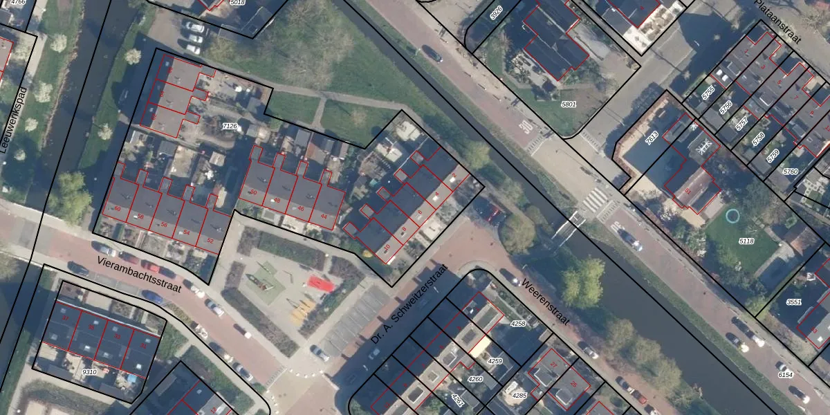 Dr. A. Schweitzerstraat 6 is gelegen op kadastraal perceel AAR00A7126. Deze kadastrale aanduiding is uniek en wordt gebruikt door het Kadaster om eigendomsrechten en andere zakelijke rechten vast te leggen. Het perceel maakt onderdeel uit van de kadastrale gemeente Ter Aar.