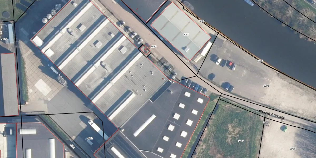 Het perceel waarop Hoekse Aarkade 5 staat heeft een oppervlakte van 1,3 ha. Dit is een zeer groot perceel. De perceeloppervlakte wordt geregistreerd door het Kadaster. Gedetailleerde informatie over de maten van dit perceel kunt u vinden in het rapport Kadastrale kaart met maatvoering van Hoekse Aarkade 5.