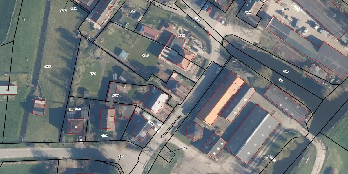 Korteraarseweg 6 is gelegen op kadastraal perceel AAR00B3728. Deze kadastrale aanduiding is uniek en wordt gebruikt door het Kadaster om eigendomsrechten en andere zakelijke rechten vast te leggen. Het perceel maakt onderdeel uit van de kadastrale gemeente Ter Aar.