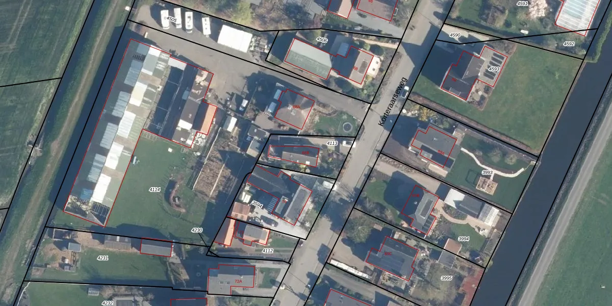 Korteraarseweg 68-B is gelegen op kadastraal perceel AAR00B4113. Deze kadastrale aanduiding is uniek en wordt gebruikt door het Kadaster om eigendomsrechten en andere zakelijke rechten vast te leggen. Het perceel maakt onderdeel uit van de kadastrale gemeente Ter Aar.