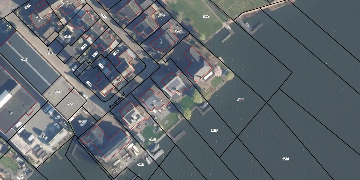 Kuiperserf 9 is gelegen op kadastraal perceel AAR00A5819. Deze kadastrale aanduiding is uniek en wordt gebruikt door het Kadaster om eigendomsrechten en andere zakelijke rechten vast te leggen. Het perceel maakt onderdeel uit van de kadastrale gemeente Ter Aar.