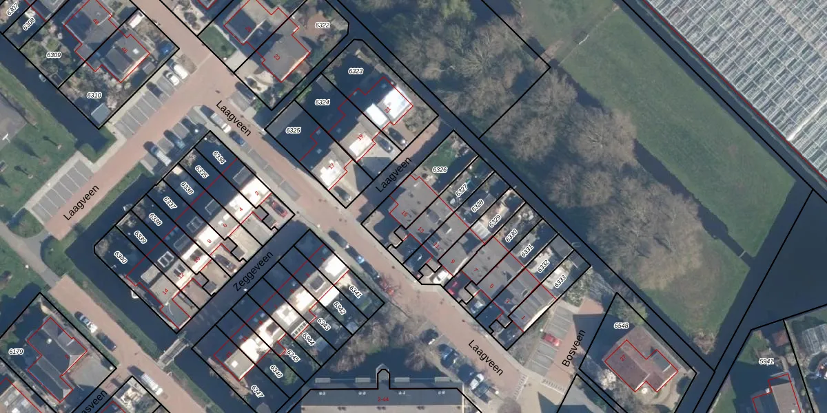 Laagveen 15 is gelegen op kadastraal perceel AAR00A6326. Deze kadastrale aanduiding is uniek en wordt gebruikt door het Kadaster om eigendomsrechten en andere zakelijke rechten vast te leggen. Het perceel maakt onderdeel uit van de kadastrale gemeente Ter Aar.