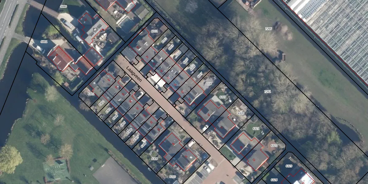 Laagveen 33 is gelegen op kadastraal perceel AAR00A6317. Deze kadastrale aanduiding is uniek en wordt gebruikt door het Kadaster om eigendomsrechten en andere zakelijke rechten vast te leggen. Het perceel maakt onderdeel uit van de kadastrale gemeente Ter Aar.