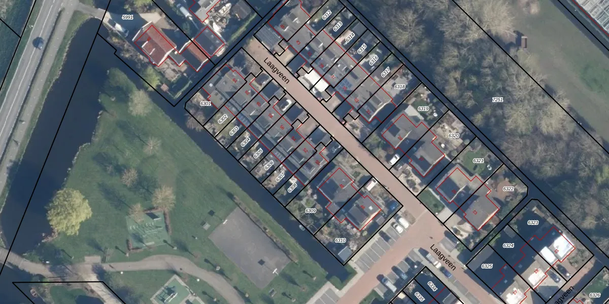 Laagveen 52 is gelegen op kadastraal perceel AAR00A6307. Deze kadastrale aanduiding is uniek en wordt gebruikt door het Kadaster om eigendomsrechten en andere zakelijke rechten vast te leggen. Het perceel maakt onderdeel uit van de kadastrale gemeente Ter Aar.