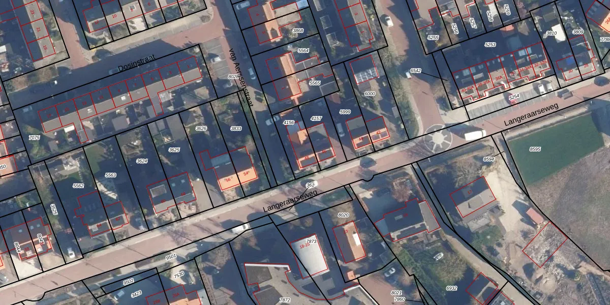 Gebruik de zoekbalk of klik op een perceel voor informatie over de adressen binnen dit perceel.