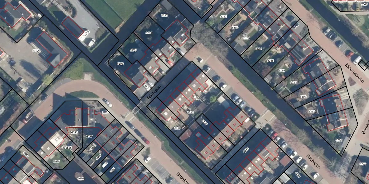 Rietveen 29 is gelegen op kadastraal perceel AAR00A8191. Deze kadastrale aanduiding is uniek en wordt gebruikt door het Kadaster om eigendomsrechten en andere zakelijke rechten vast te leggen. Het perceel maakt onderdeel uit van de kadastrale gemeente Ter Aar.