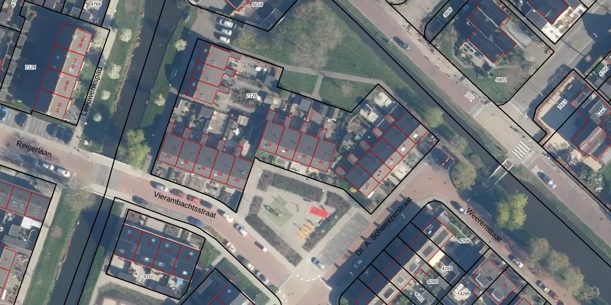 Vierambachtsstraat 46 is gelegen op kadastraal perceel AAR00A7126. Deze kadastrale aanduiding is uniek en wordt gebruikt door het Kadaster om eigendomsrechten en andere zakelijke rechten vast te leggen. Het perceel maakt onderdeel uit van de kadastrale gemeente Ter Aar.