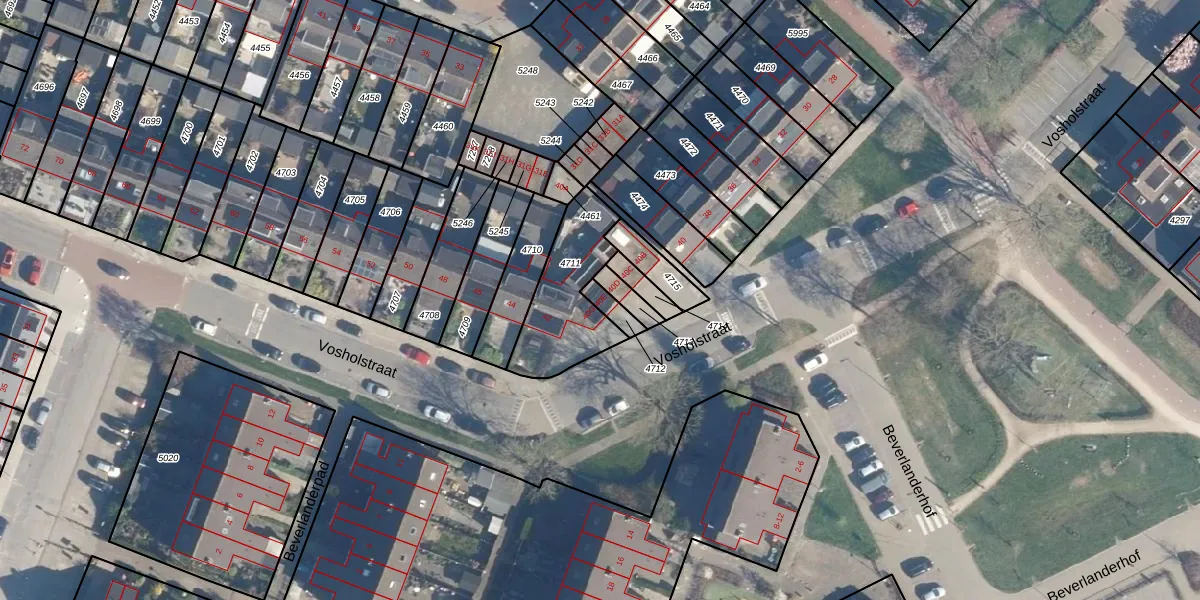 Vosholstraat 40-E is gelegen op kadastraal perceel AAR00A4712. Deze kadastrale aanduiding is uniek en wordt gebruikt door het Kadaster om eigendomsrechten en andere zakelijke rechten vast te leggen. Het perceel maakt onderdeel uit van de kadastrale gemeente Ter Aar.