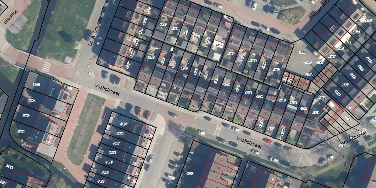 Vosholstraat 64 is gelegen op kadastraal perceel AAR00A4700. Deze kadastrale aanduiding is uniek en wordt gebruikt door het Kadaster om eigendomsrechten en andere zakelijke rechten vast te leggen. Het perceel maakt onderdeel uit van de kadastrale gemeente Ter Aar.