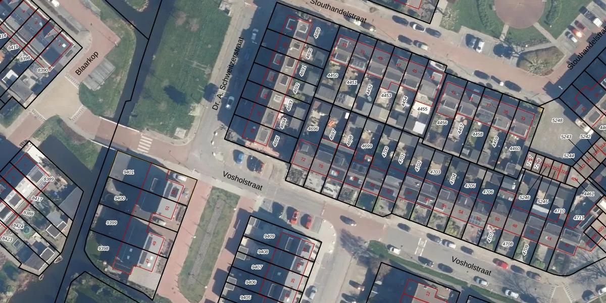 Vosholstraat 72 is gelegen op kadastraal perceel AAR00A4696. Deze kadastrale aanduiding is uniek en wordt gebruikt door het Kadaster om eigendomsrechten en andere zakelijke rechten vast te leggen. Het perceel maakt onderdeel uit van de kadastrale gemeente Ter Aar.