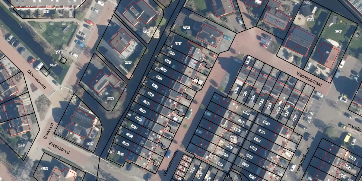 Walnootstraat 38 is gelegen op kadastraal perceel AAR00A5853. Deze kadastrale aanduiding is uniek en wordt gebruikt door het Kadaster om eigendomsrechten en andere zakelijke rechten vast te leggen. Het perceel maakt onderdeel uit van de kadastrale gemeente Ter Aar.
