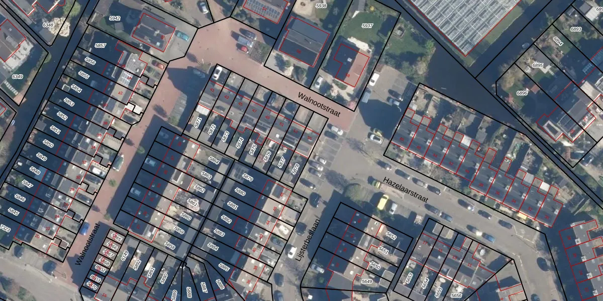 Walnootstraat 55 is gelegen op kadastraal perceel AAR00A5878. Deze kadastrale aanduiding is uniek en wordt gebruikt door het Kadaster om eigendomsrechten en andere zakelijke rechten vast te leggen. Het perceel maakt onderdeel uit van de kadastrale gemeente Ter Aar.