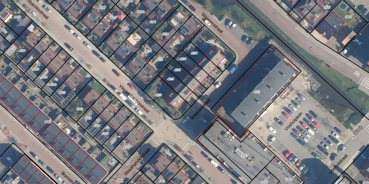 Het perceel waarop Weerenstraat 3 staat heeft een oppervlakte van 157 m². Dit is een middelgroot perceel. De perceeloppervlakte wordt geregistreerd door het Kadaster. Gedetailleerde informatie over de maten van dit perceel kunt u vinden in het rapport Kadastrale kaart met maatvoering van Weerenstraat 3.