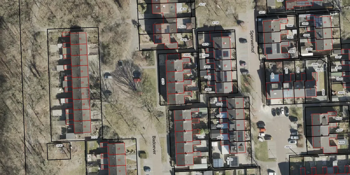 Het perceel waarop Badoever 14 staat heeft een oppervlakte van 659 m². Dit is een groot perceel. De perceeloppervlakte wordt geregistreerd door het Kadaster. Gedetailleerde informatie over de maten van dit perceel kunt u vinden in het rapport Kadastrale kaart met maatvoering van Badoever 14.