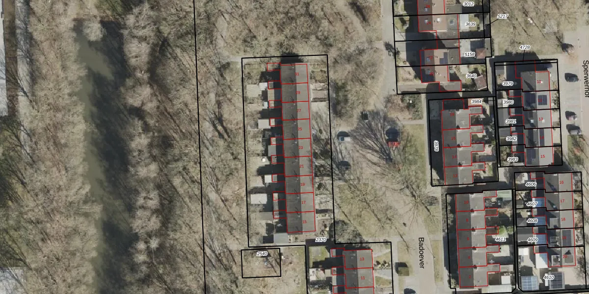 Het perceel waarop Badoever 23 staat heeft een oppervlakte van 3290 m². Dit is een zeer groot perceel. De perceeloppervlakte wordt geregistreerd door het Kadaster. Gedetailleerde informatie over de maten van dit perceel kunt u vinden in het rapport Kadastrale kaart met maatvoering van Badoever 23.