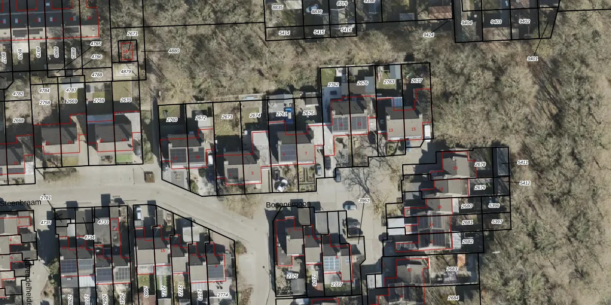 Gebruik de zoekbalk of klik op een perceel voor informatie over de adressen binnen dit perceel.