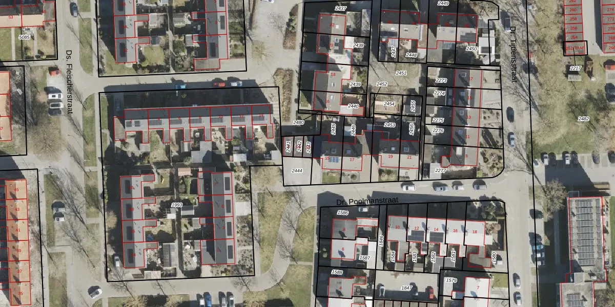Dr. Poolmanstraat 13 is gelegen op kadastraal perceel VWD02I2443. Deze kadastrale aanduiding is uniek en wordt gebruikt door het Kadaster om eigendomsrechten en andere zakelijke rechten vast te leggen. Het perceel maakt onderdeel uit van de kadastrale gemeente Vlagtwedde.