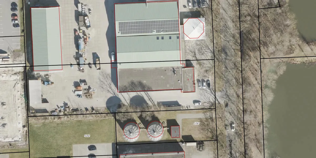 Het perceel waarop Drenthweg 3 staat heeft een oppervlakte van 3777 m². Dit is een zeer groot perceel. De perceeloppervlakte wordt geregistreerd door het Kadaster. Gedetailleerde informatie over de maten van dit perceel kunt u vinden in het rapport Kadastrale kaart met maatvoering van Drenthweg 3.
