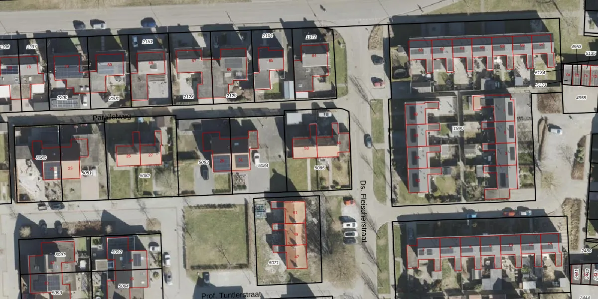 Het perceel waarop Ds. Fleischerstraat 53 staat heeft een oppervlakte van 585 m². Dit is een groot perceel. De perceeloppervlakte wordt geregistreerd door het Kadaster. Gedetailleerde informatie over de maten van dit perceel kunt u vinden in het rapport Kadastrale kaart met maatvoering van Ds. Fleischerstraat 53.