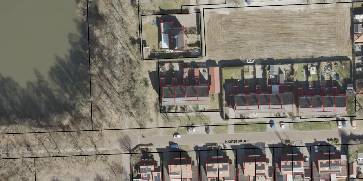 Eksterstraat 36 is gelegen op kadastraal perceel VWD02I5263. Deze kadastrale aanduiding is uniek en wordt gebruikt door het Kadaster om eigendomsrechten en andere zakelijke rechten vast te leggen. Het perceel maakt onderdeel uit van de kadastrale gemeente Vlagtwedde.