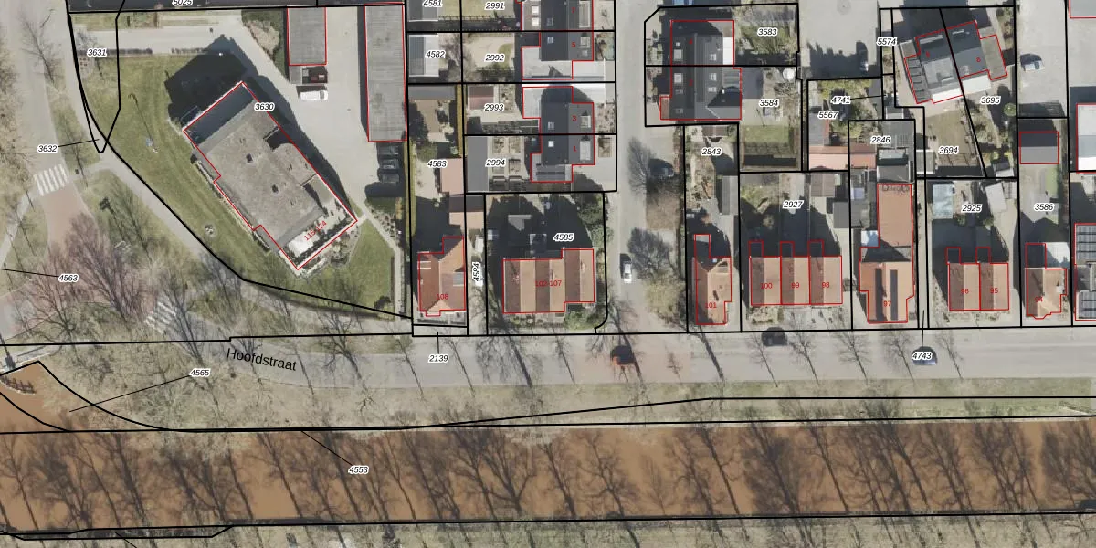 Het perceel waarop Hoofdstraat 105 staat heeft een oppervlakte van 562 m². Dit is een groot perceel. De perceeloppervlakte wordt geregistreerd door het Kadaster. Gedetailleerde informatie over de maten van dit perceel kunt u vinden in het rapport Kadastrale kaart met maatvoering van Hoofdstraat 105.