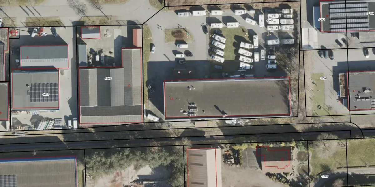 Het perceel waarop Industrieweg 12 staat heeft een oppervlakte van 5095 m². Dit is een zeer groot perceel. De perceeloppervlakte wordt geregistreerd door het Kadaster. Gedetailleerde informatie over de maten van dit perceel kunt u vinden in het rapport Kadastrale kaart met maatvoering van Industrieweg 12.