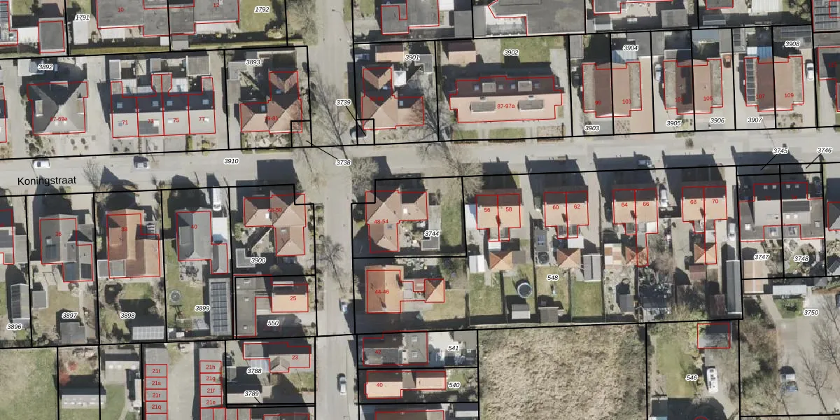 Het perceel waarop Koningstraat 54 staat heeft een oppervlakte van 462 m². Dit is een groot perceel. De perceeloppervlakte wordt geregistreerd door het Kadaster. Gedetailleerde informatie over de maten van dit perceel kunt u vinden in het rapport Kadastrale kaart met maatvoering van Koningstraat 54.